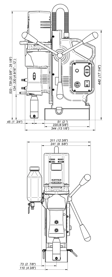 PRO-76T PP устраняет необходимость в нескольких инструментах. Он легко справляется со сверлением отверстий до 76 мм кольцевыми фрезами (или до 32 мм спиральными сверлами). Но его возможности этим не ограничиваются: станок уверенно выполняет зенкование до 65 мм и, что особенно важно, нарезание резьбы до M24 благодаря реверсивному шпинделю. Два скоростных диапазона (80-160 об/мин и 210-420 об/мин) в сочетании с плавной регулировкой скорости позволяют точно подобрать оптимальный режим для любого материала и задачи, гарантируя максимальную производительность.